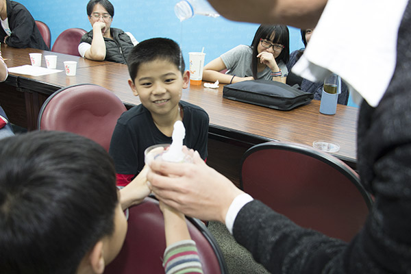 人造雲實驗完,狀元奇機還準備了一個安可版實驗-冰雪奇緣。沒看過冰雪奇緣也有聽過Let it go這首膾炙人手歌曲 ,劇中Elsa施展神威創造出一座雪雕樂園,而我們利用醋酸鈉溶於水及其本身特性來產生結晶,並教學水溶液與濃度的關係;把醋酸鈉溶進水中成過飽和溶液,調配成濃度比同溫下飽和溶液濃度還高的溶液,這時過飽和溶液在不穩定狀態下時進行搖晃,就能將過量的溶質部分馬上結晶出來。做起來既是鐘乳石又是雪寶的背影,讓在場大小朋友驚喜萬分,小小實驗滿足大大的樂趣,實現了小朋友當Elsa的科幻夢。