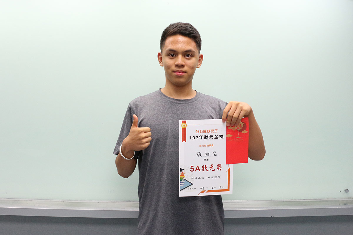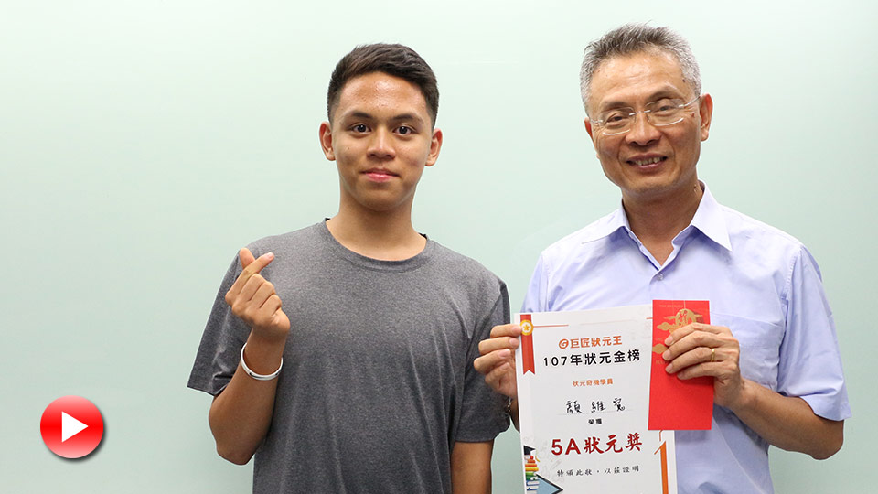 很開心今年可以以5A的成績錄取成功高中,我覺得好成績得不二法門就是:遇到問題要積極解決,才能有所進步!因此9年級開始,我會規定自己的學習進度外,只要有不熟悉的地方,就馬上利用狀元奇機釐清觀念!
