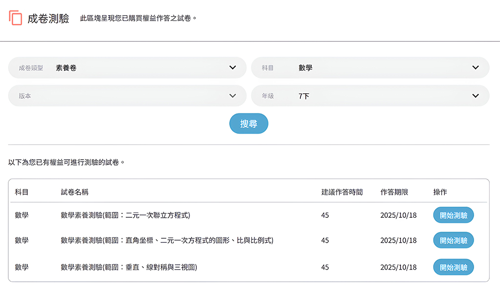 適合5-9年級 線上素養導向海量題庫 組卷練習、動態詳解